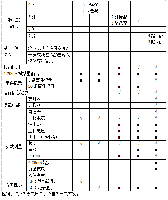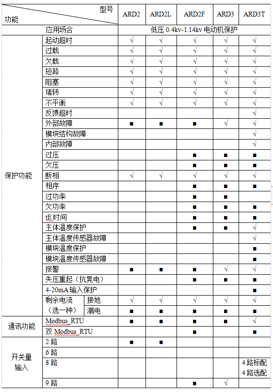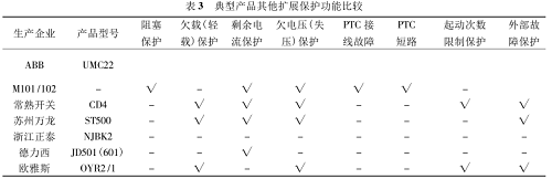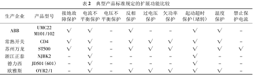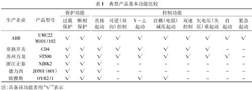 目前,企業(yè)生產(chǎn)的電動機保護器典型產(chǎn)品基本功能比較如表 1 所示。