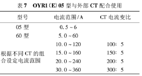 由表7可見,采用60型保護器,其電流為 60 A;但采用05型與外部CT組合后,電流可至360A。當然,輸出繼電器的觸點容量也應(yīng)相應(yīng)變大。