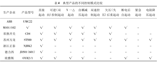 從各企業(yè)生產(chǎn)的產(chǎn)品所具有的控制模式來看,一般均可直接起動電動機。由于電子技術(shù)的發(fā)展,許多企業(yè)根據(jù)用戶需求增添了許多控制模式,如 ABB 公司、蘇州萬龍電氣集團股份有限公司(以下簡稱蘇州萬龍)及歐雅斯的產(chǎn)品具有的控制模式較多,特別是 ABB 公司的產(chǎn)品,還帶有緊急起動模式,以滿足在特殊情況下快速起動電動機的需要。歐雅斯及蘇州萬龍的產(chǎn)品均帶有常用的自耦減壓及電阻降壓起動模式,滿足了大多數(shù)用戶常用的電動機起動方式,因而深受歡迎。