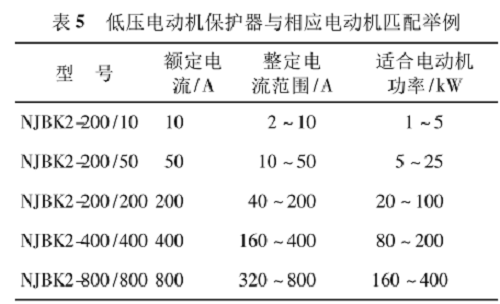 電動機保護器樣本中的技術(shù)性能就提供與電機相匹配的數(shù)據(jù),如表 5 所示。