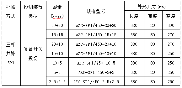 AZCL系列智能電容器選型: