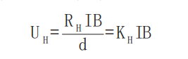 式中:RH是霍爾系數(shù)(是由材料性質(zhì)決定的一個(gè)常數(shù)),對(duì)于金屬導(dǎo)體而言,RH=1/nq(n為載流子濃度或自由電子濃度,q為電子電量。),I為通過器件的電流,B為垂直于I的磁感應(yīng)強(qiáng)度,d為導(dǎo)體的厚度,KH=RH/d稱為霍爾元件的靈敏度,它是表征單位磁感應(yīng)強(qiáng)度和單位電流時(shí)的霍爾電壓輸出大小的一個(gè)重要參數(shù),一般希望它越大越好。若保證式(1)中I不變,那么,在一定條件下,就可通過測量霍爾電壓UH來推算出磁感應(yīng)強(qiáng)度B的大小,并由此建立了磁場與電壓信號(hào)的聯(lián)系。根據(jù)這一關(guān)系,人們研制出了霍爾器件。