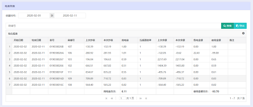 能耗分析:用戶和管理員都可查詢預(yù)付費(fèi)表或管控表每天的用能狀況;可提供能耗分析+財務(wù)軌跡一體式綜合管理報表,包含用戶表的能耗、財務(wù)數(shù)據(jù)、能耗和財務(wù)的期初期末值等數(shù)據(jù)。