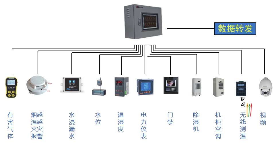 安科瑞電氣股份有限公司根據(jù)配電室實際情況,結(jié)合多年的變電站和配電室的運行管理經(jīng)驗,自主研發(fā)了安科瑞配電室綜合監(jiān)控系統(tǒng),實現(xiàn)了智能開關(guān)柜運行監(jiān)控、高壓開關(guān)柜帶電顯示、電流電壓等負載運行監(jiān)控、母線測溫監(jiān)測、電纜測溫監(jiān)測、環(huán)境監(jiān)測、有害氣體監(jiān)測、安防監(jiān)控、采暖通風、門禁、燈光、風機、除濕機、空調(diào)控制等功能。實現(xiàn)動力環(huán)境各數(shù)據(jù)的檢測與設備控制,實現(xiàn)動力環(huán)境優(yōu)化,避免運行環(huán)境的失控導致配電設備運行故障,保證維護人員安全,延長設備使用壽命,減少配電室粗放式管理導致成本過高,同時實現(xiàn)配電動力環(huán)境的分布式遠程管理。