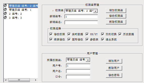 為保障系統(tǒng)安全穩(wěn)定運行,設置了用戶權(quán)限管理功能。通過用戶權(quán)限管理能夠防止未經(jīng)授權(quán)的操作(如遙控的操作,數(shù)據(jù)庫修改等)。可以定義不同級別用戶的登錄名、密碼及操作權(quán)限,為系統(tǒng)運行、維護、管理提供可靠的安全保障。