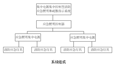 消防應(yīng)急照明和疏散指示系統(tǒng)由主機(jī)(主機(jī))、集中電源(供電)和燈具(疏散指示燈、應(yīng)急照明燈)等幾部分組成。如下圖: