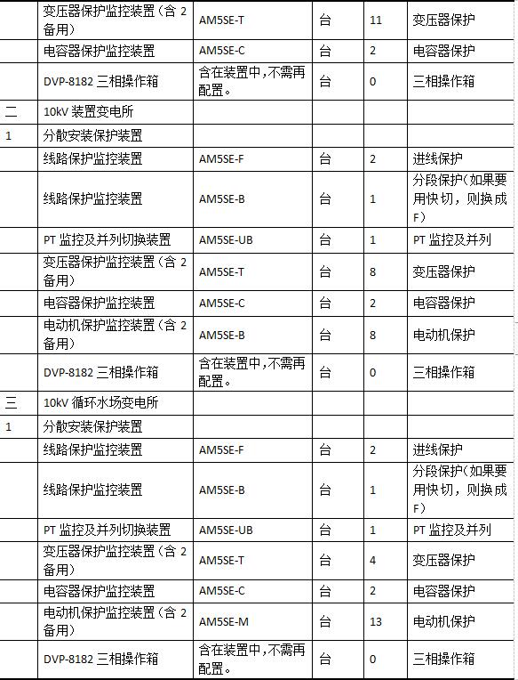 1)微機保護裝置明細