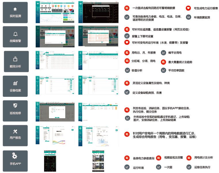 變電所運維云平臺采用多功能電力儀表、無線通信、邊緣計算網(wǎng)關(guān)及大數(shù)據(jù)分析技術(shù),通過智能網(wǎng)關(guān)采集現(xiàn)場數(shù)據(jù)并存儲在本地,再定時向云平臺推送數(shù)據(jù)。平臺可同時接入數(shù)以千計的用戶變電站數(shù)據(jù)。平臺采集的數(shù)據(jù)包括變電所電氣參數(shù)和環(huán)境數(shù)據(jù),包括電流電壓功率、開關(guān)狀態(tài)、變壓器溫度、環(huán)境溫濕度、浸水、煙霧、視頻、門禁等信息,有異常發(fā)生10S內(nèi)通過短信和APP發(fā)出告警信號。平臺通過手機(jī)APP下發(fā)運維任務(wù)到指定人員手機(jī)上,并通過GPS跟蹤運維執(zhí)行過程進(jìn)行閉環(huán),提高運維效率,即時發(fā)現(xiàn)運行缺陷并做消缺處理。
