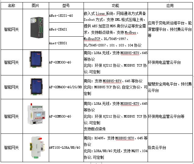 安科瑞根據(jù)多年來的項目經(jīng)驗,結(jié)合用戶實際需求,開發(fā)了各類有線、區(qū)域無線、廣域無線通訊產(chǎn)品,包括網(wǎng)關(guān)和終端設(shè)備。支持RS485、以太網(wǎng)、LORA、ZigBee、GPRS、4G、NB-IOT等多種通訊方式,隨著5G建設(shè)步伐的加快,未來將會有越來越多的通訊方式融入產(chǎn)品,服務(wù)于泛在電力物聯(lián)網(wǎng)建設(shè)。
