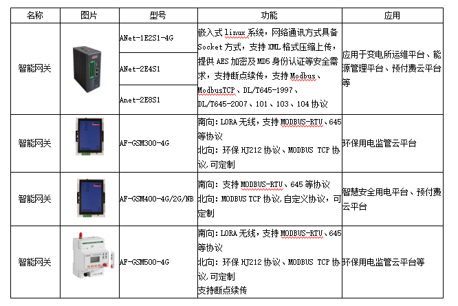 安科瑞針對物聯(lián)網(wǎng)應(yīng)用開發(fā)了多款智能網(wǎng)關(guān),采用嵌入式系統(tǒng)和邊緣計(jì)算技術(shù),現(xiàn)場采集和存儲(chǔ)終端設(shè)備數(shù)據(jù),并根據(jù)云平臺的需要,采用不同的協(xié)議和云平臺對接。所有數(shù)據(jù)采集、計(jì)算、異常報(bào)警觸發(fā)邏輯均在網(wǎng)關(guān)就地設(shè)置,網(wǎng)絡(luò)故障時(shí)數(shù)據(jù)存儲(chǔ)在本地,網(wǎng)絡(luò)恢復(fù)后補(bǔ)傳數(shù)據(jù),斷點(diǎn)續(xù)傳,提高數(shù)據(jù)可靠性。