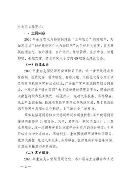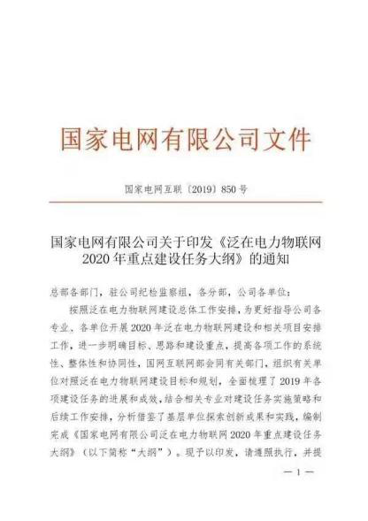 2019年12月2日國家電網(wǎng)有限公司(下稱“國網(wǎng)公司”)發(fā)布了國家電網(wǎng)互聯(lián)[2019]850號文《泛在電力物聯(lián)網(wǎng)2020年重點建設任務大綱》,對建設電力泛在物聯(lián)網(wǎng)有關(guān)工作進行部署,重點開展能源生態(tài)、客戶服務、生產(chǎn)運行、經(jīng)營管理、企業(yè)中臺、智慧物聯(lián)、基礎(chǔ)支撐、技術(shù)研究八個方向40項重點建設任務,內(nèi)容摘錄如下: