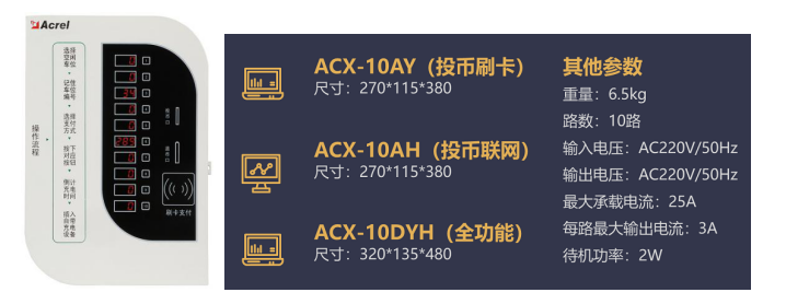 安科瑞電動自行車充電樁有三種規(guī)格可供選擇,包括